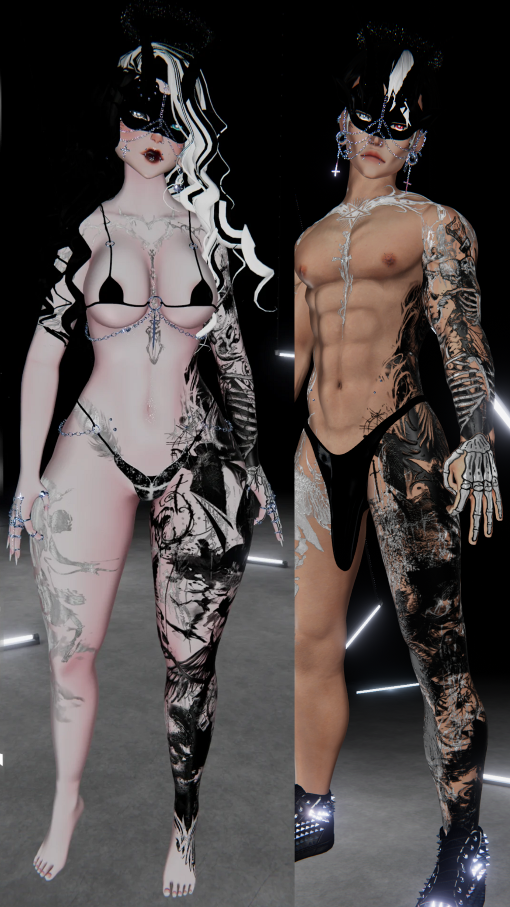 Memento Mori Tattoo Texture Couple package (ZinFit Base) (Azura Head)(Ace V2-V4)(Zinpia Mike Head)